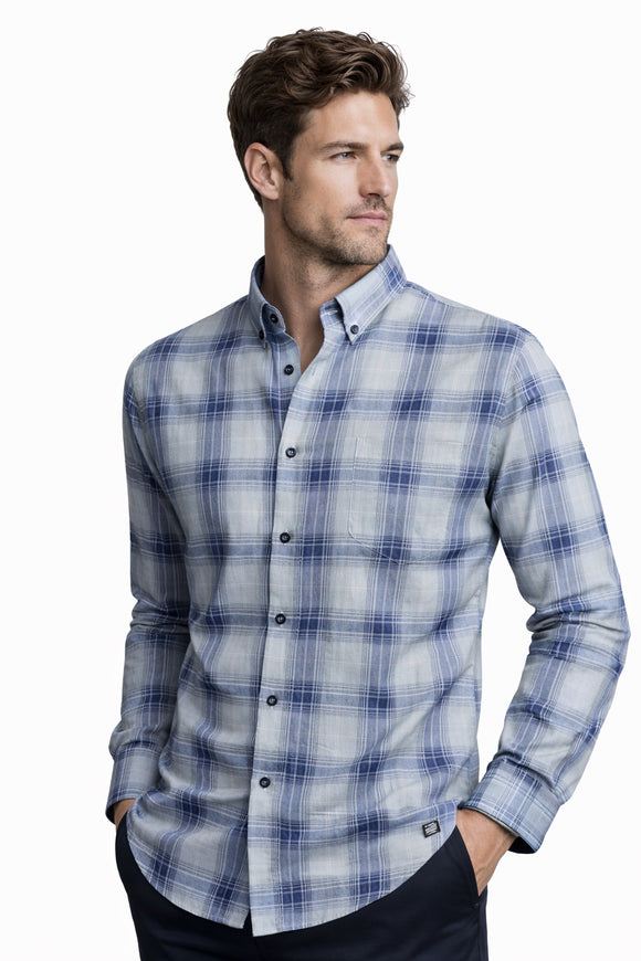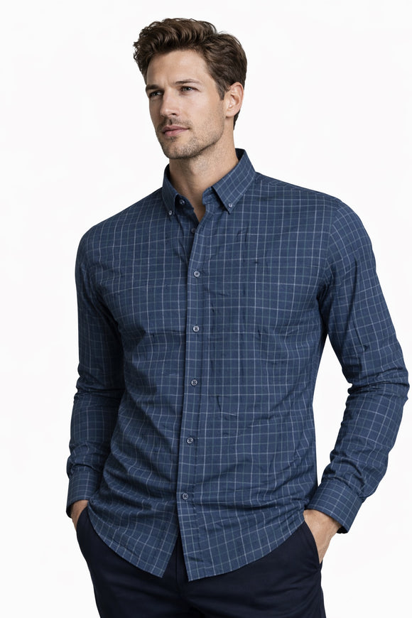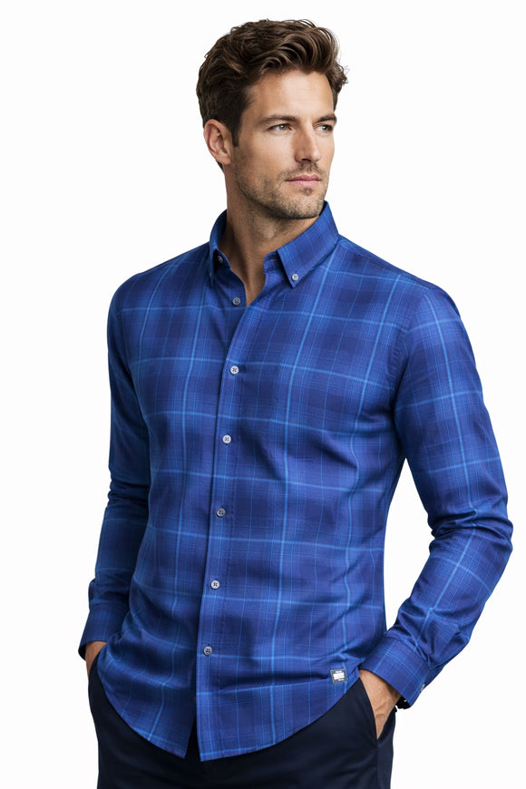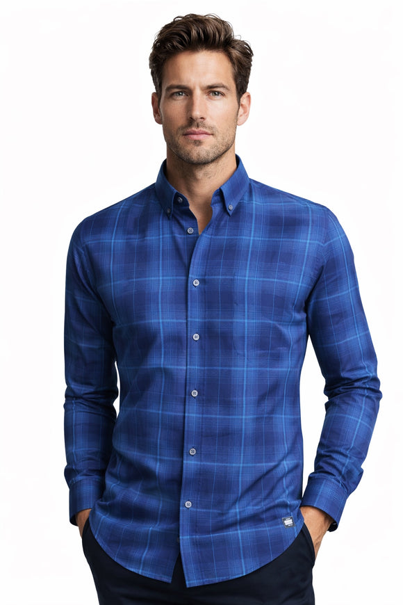 CAMISA SHERMAN MORGAN PARA HOMBRE - AZUL CON CUADRICULA MARINO