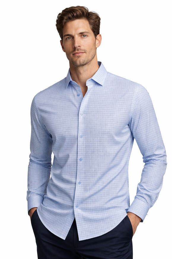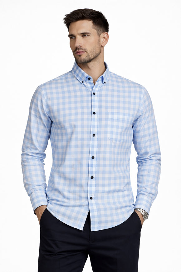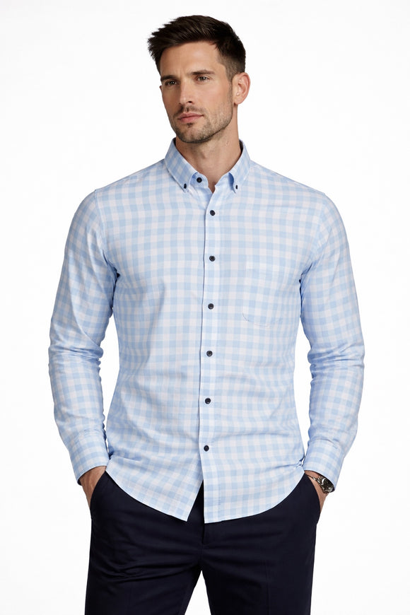 CAMISA SHERMAN MORGAN PARA HOMBRE - CUADROS AZUL CIELO Y BLANCO