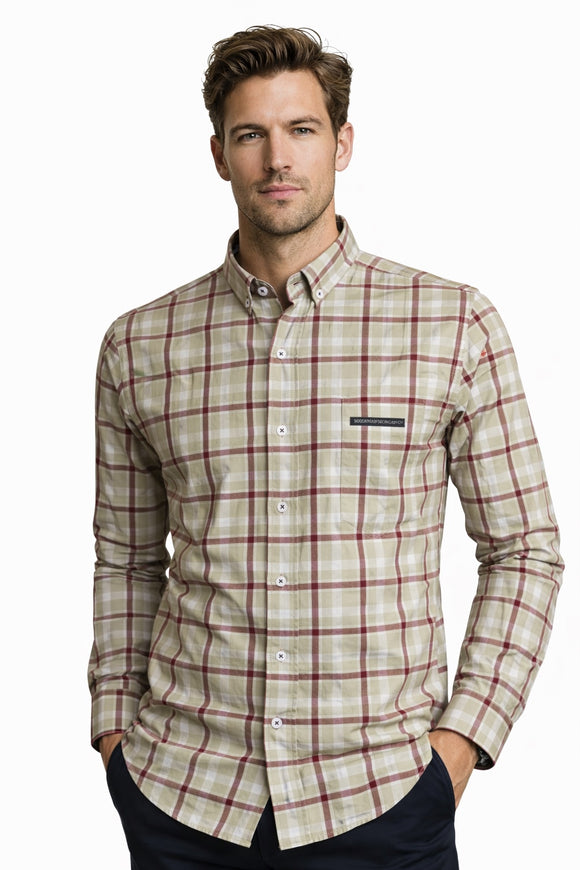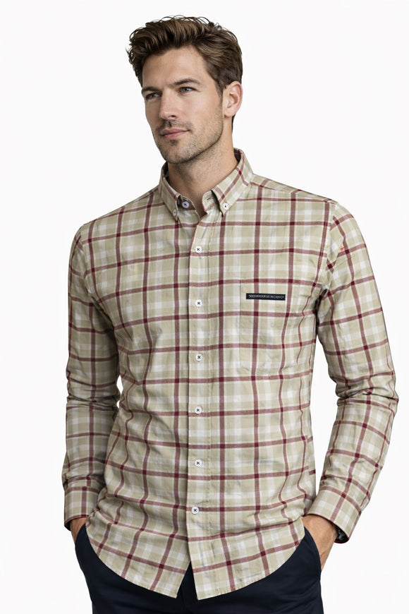 CAMISA SHERMAN MORGAN PARA HOMBRE - CUADROS BEIGE CON ROJO
