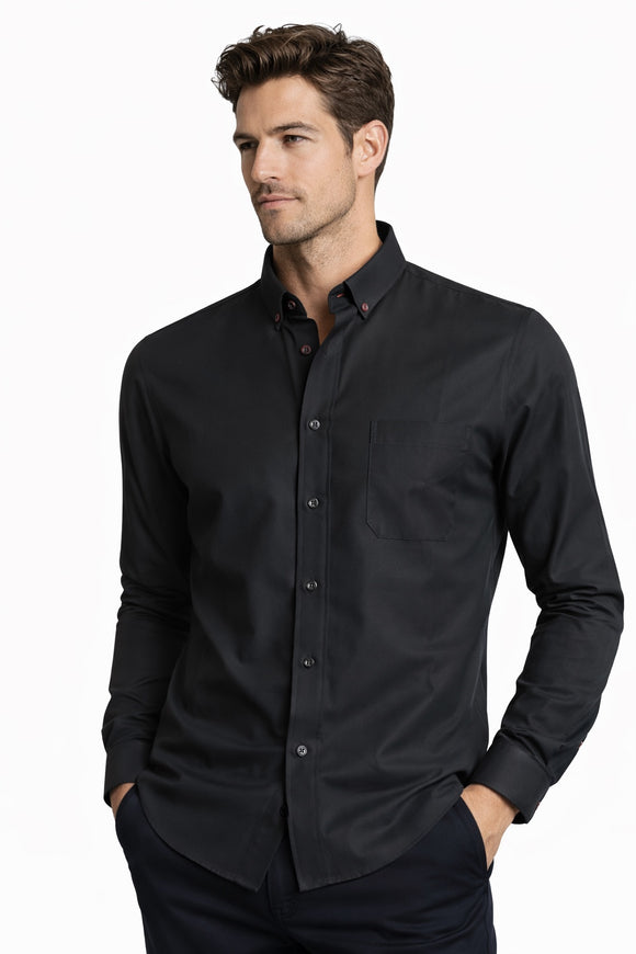 CAMISA SHERMAN MORGAN PARA HOMBRE - NEGRA BASICA CON BOLSO