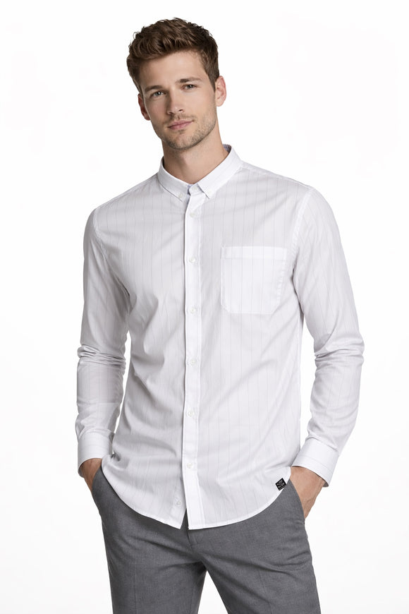 CAMISA SHERMAN MORGAN PARA HOMBRE - BLANCA CON FINAS RAYAS