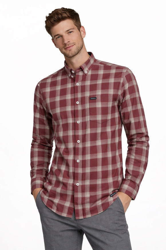 CAMISA SHERMAN MORGAN PARA HOMBRE - CUADROS LADRILLO Y BEIGE