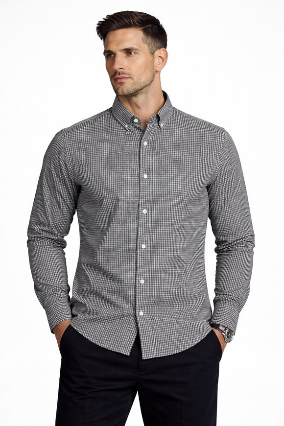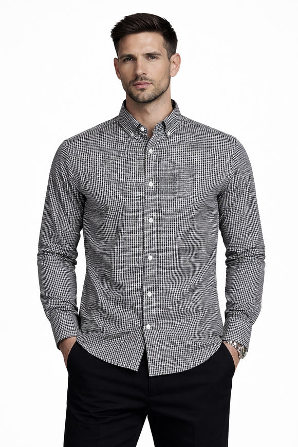 CAMISA SHERMAN MORGAN PARA HOMBRE - MINI CUADROS NEGRO Y BLANCO