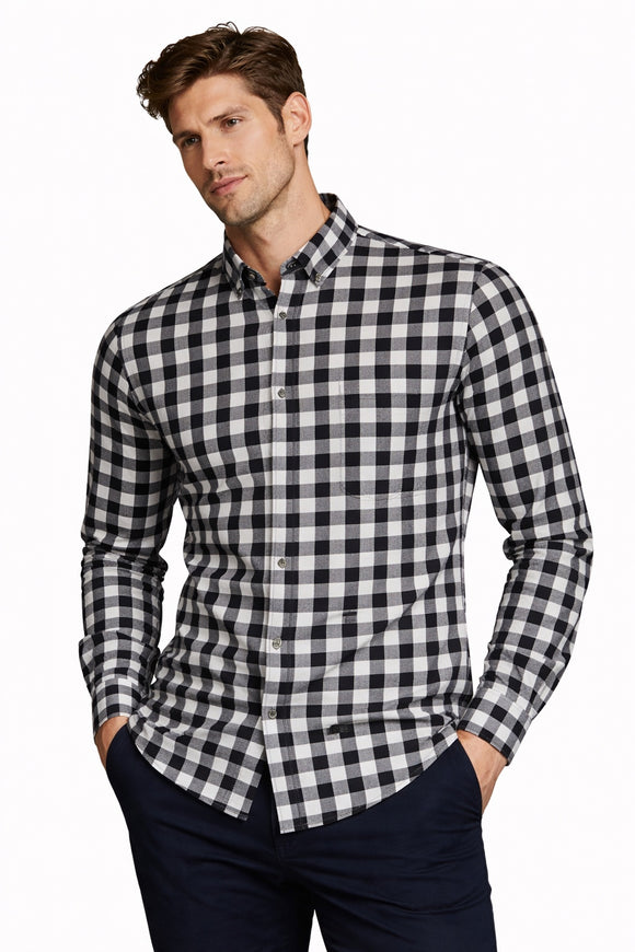 CAMISA SHERMAN MORGAN PARA HOMBRE - CUADROS MEDIANOS NEGRO Y BLANCO