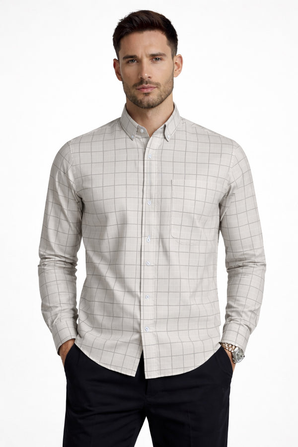 CAMISA SHERMAN MORGAN PARA HOMBRE - BEIGE CON CUADRICULA