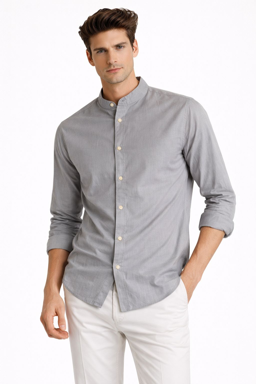 CAMISA SHERMAN MORGAN PARA HOMBRE - CUELLO MAO GRIS