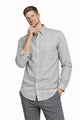 Camisa de corte regular fit que ofrece una silueta elegante y definida, ligeramente ajustada al torso, hombros y brazos para un look moderno. Confeccionada en 80% algodón y 20% poliéster con tela melange en color gris. Presenta manga larga con puños abotonados, cuello camisero clásico, cierre de botonadura frontal y etiqueta S&M al interior.