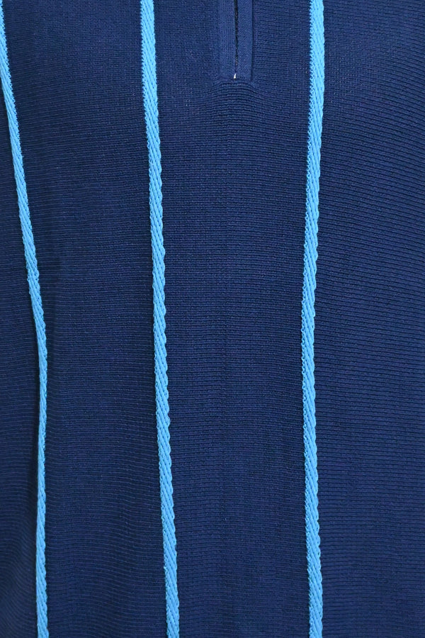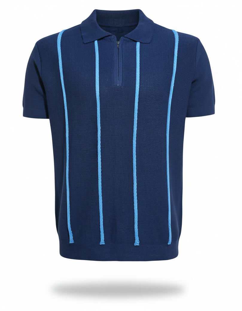 Polo color azul rey con rayas azul claro de corte fit que ofrece una silueta elegante y definida, ligeramente ajustada al torso, hombros y brazos para un look moderno. Confeccionada en 50% algodón, 50% poliéster, abotonado frontal y etiqueta S&M al interior.