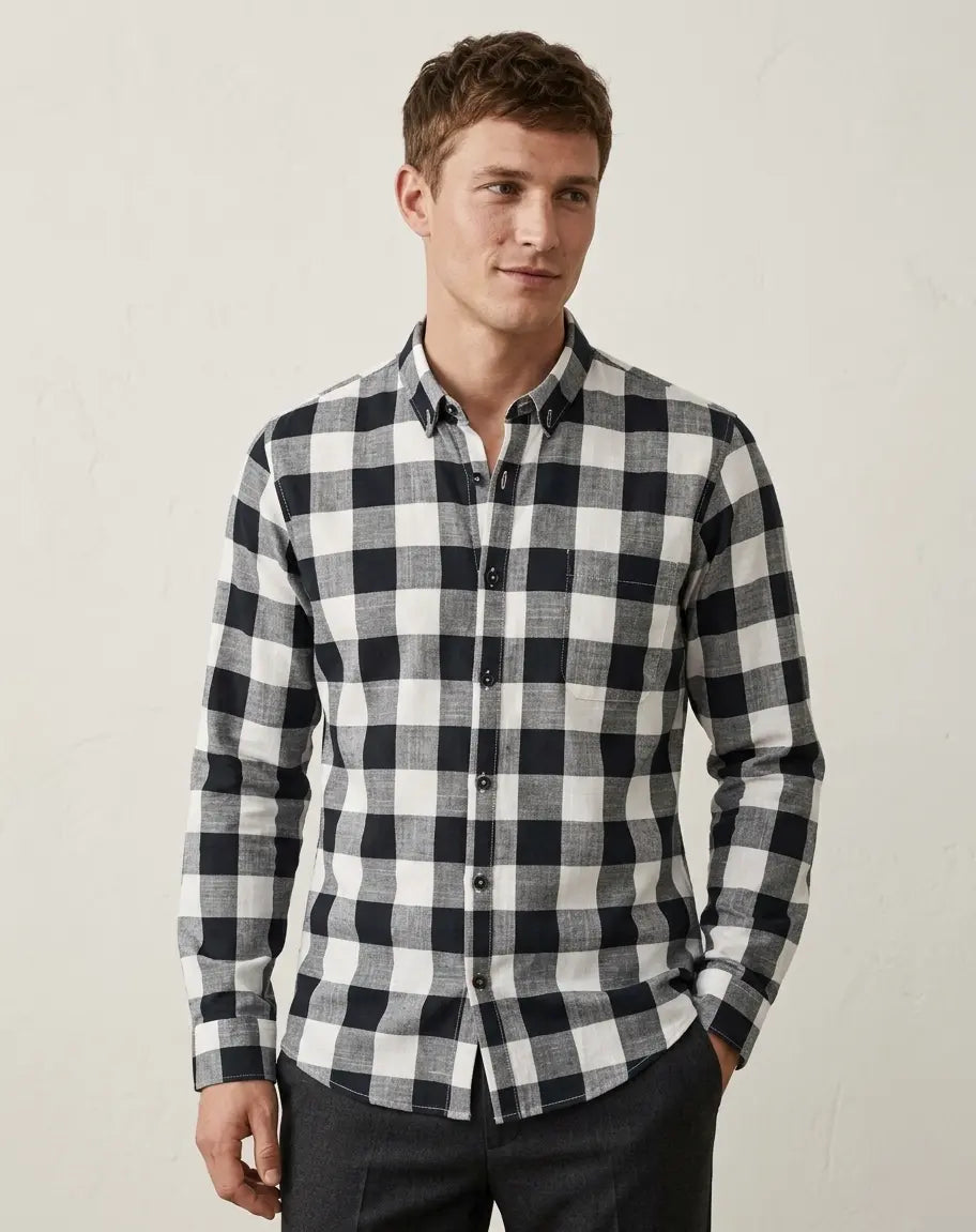 CAMISA SHERMAN MORGAN PARA HOMBRE - CUADROS NEGRO Y BLANCO
